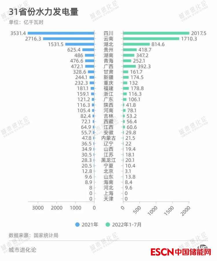 截至2021年,全國共有3個省份的水力發(fā)電量超過1000億千瓦時,分別是四川(3531.4億千瓦時)、云南(2716.3億千瓦時)和湖北(1531.5億千瓦時)。
