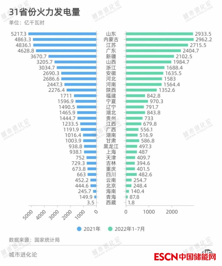不過,和大部分人印象中的排名不同,在火力發(fā)電量排行榜上,山東才是“隱形冠軍”,多年來一直占據(jù)首位,2021年發(fā)電量達(dá)到5217.3億千瓦時。