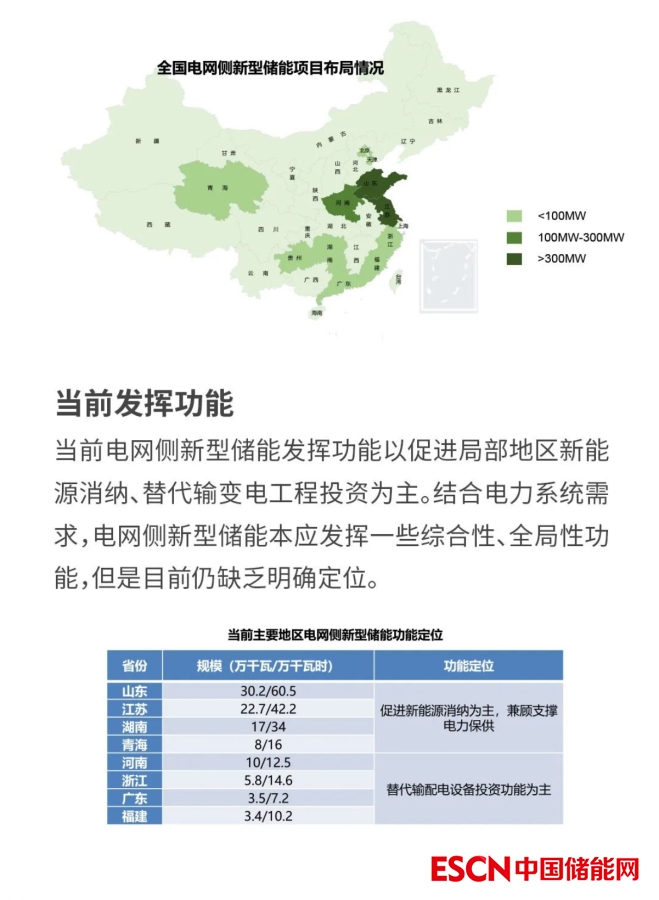 電規(guī)總院表示,當(dāng)前電網(wǎng)側(cè)新型儲(chǔ)能發(fā)揮功能以促進(jìn)局部地區(qū)新能源消納、替代輸變電工程投資為主。結(jié)合電力系統(tǒng)需求,電網(wǎng)側(cè)新型儲(chǔ)能本應(yīng)發(fā)揮一些綜合性、全局性功能,但是目前仍缺乏明確定位。