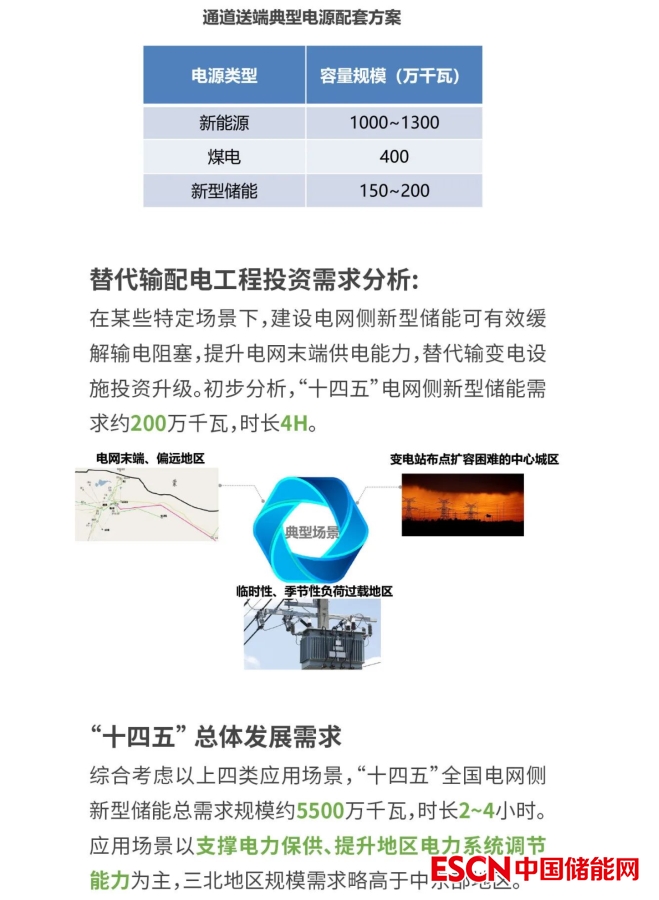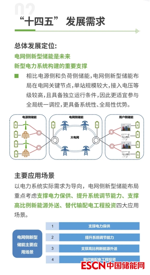 電規(guī)總院表示電網(wǎng)側(cè)新型儲(chǔ)能是未來新型電力系統(tǒng)構(gòu)建的重要支撐。據(jù)預(yù)測(cè),“十四五”全國(guó)電網(wǎng)側(cè)新型儲(chǔ)能總需求規(guī)模約5500萬千瓦,時(shí)長(zhǎng)2~4小時(shí)。應(yīng)用場(chǎng)景以支撐電力保供、提升地區(qū)電力系統(tǒng)調(diào)節(jié)能力為主,三北地區(qū)規(guī)模需求略高于中東部地區(qū)。