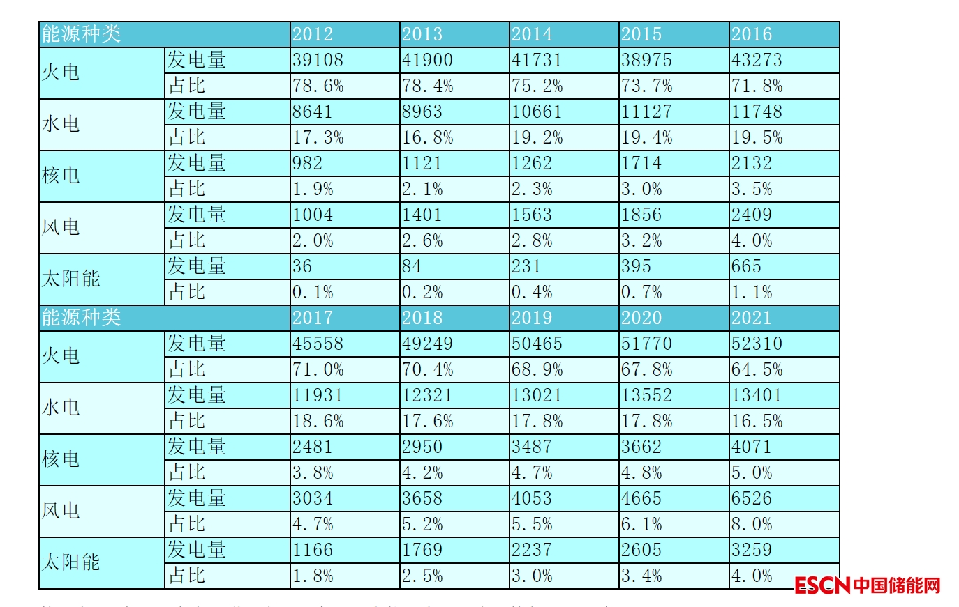 表1 2012-2021年我國能源發(fā)電量與占比 單位:億千瓦時