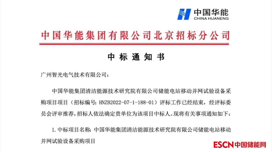 中國(guó)儲(chǔ)能網(wǎng)訊:2022年9月13日,廣州智光電氣股份有限公司控股子公司廣州智光電氣技術(shù)有限公司(以下簡(jiǎn)稱“智光電氣技術(shù)”)成功中標(biāo)中國(guó)華能集團(tuán)清潔能源技術(shù)研究院有限公司儲(chǔ)能電站移動(dòng)并網(wǎng)試驗(yàn)設(shè)備采購(gòu)項(xiàng)目。