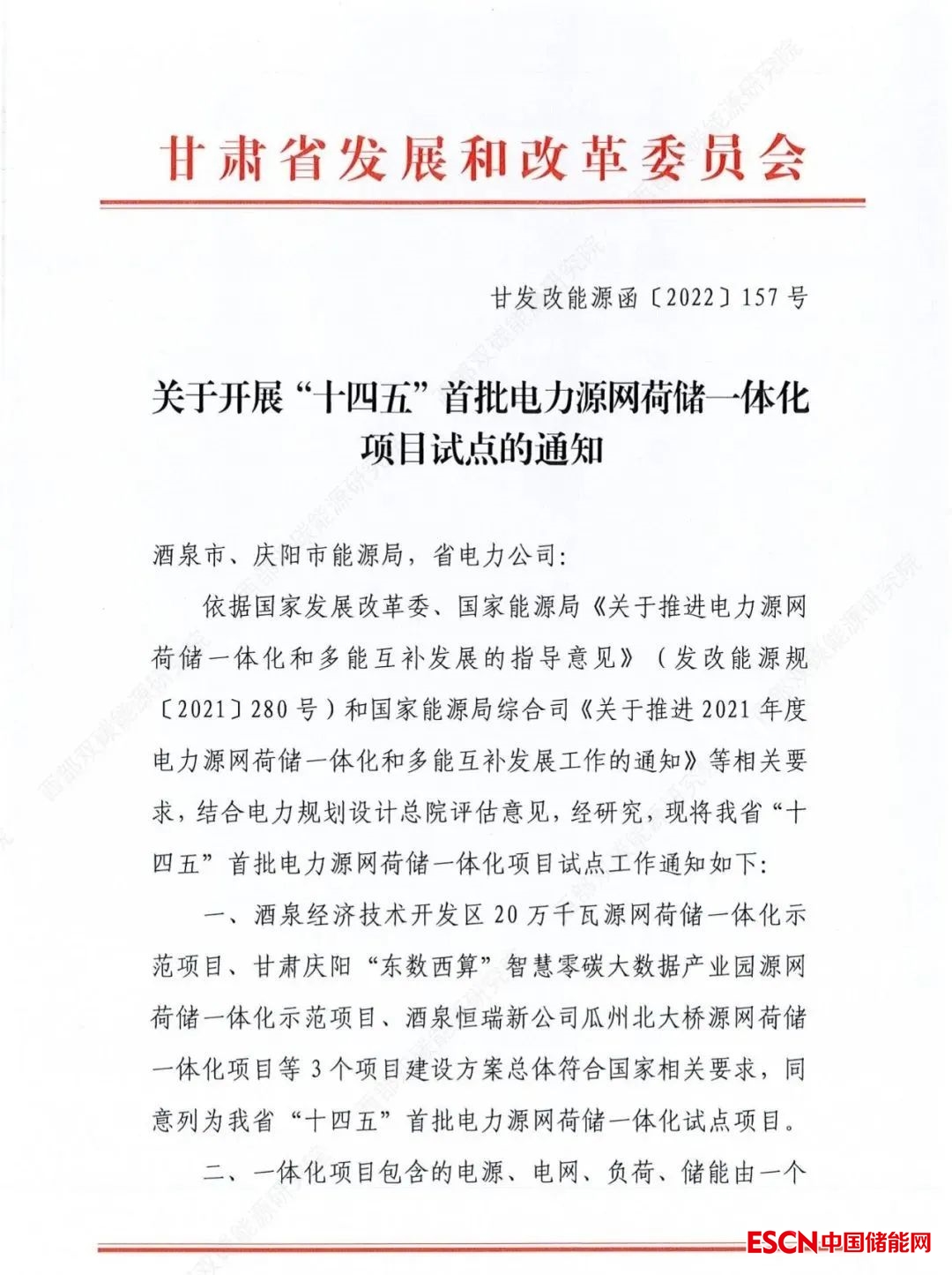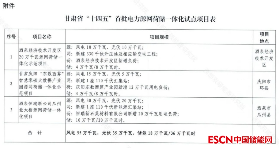 中國儲能網(wǎng)訊:9月9日,甘肅省發(fā)改委印發(fā)《關(guān)于開展“十四五”首批電力源網(wǎng)荷儲一體化項目試點的通知》,共包含3個項目,其中風(fēng)電55萬千瓦,光伏35萬千瓦,儲能18萬千瓦/36萬千瓦時,分別為: