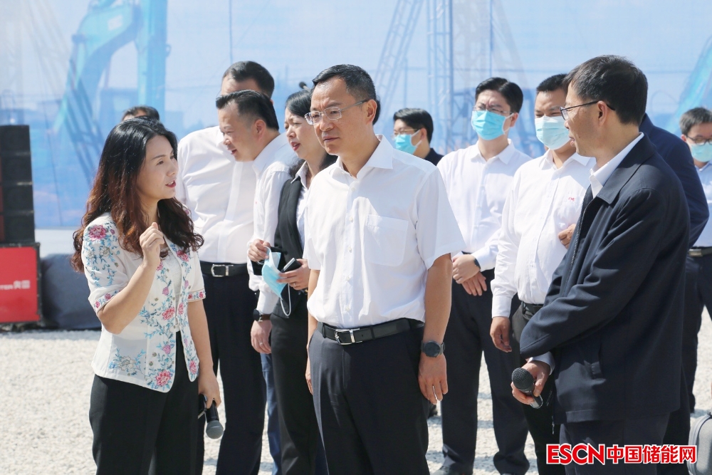 億緯鋰能副總裁李沐芬(左一)介紹項(xiàng)目情況