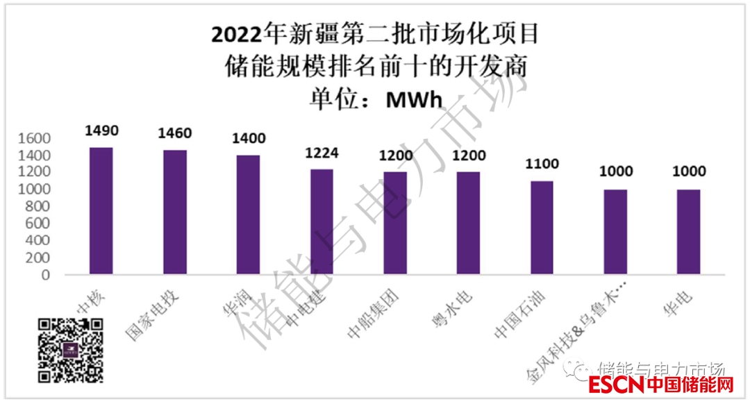第二批市場化并網(wǎng)項(xiàng)目中,央企配置大量儲能,超過1000MWh的企業(yè)就達(dá)到了9家,如下圖所示。