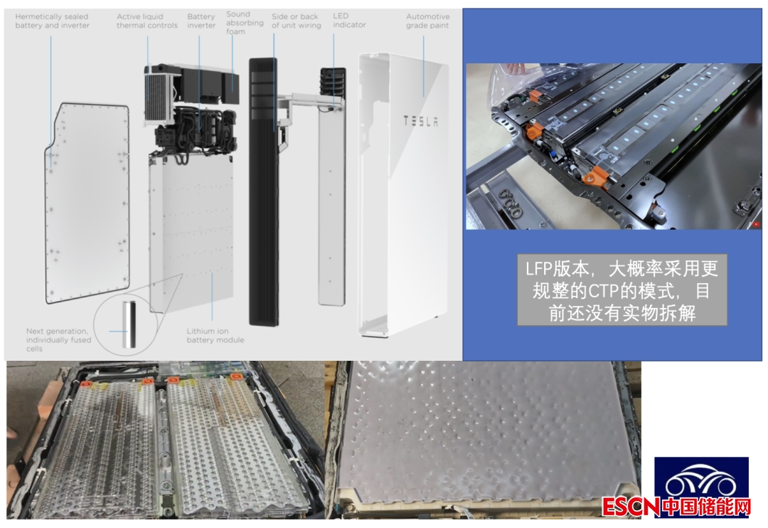 而隨后演變類似無模組的方案,把電芯全部做成一個大塊,通過灌封的模式。右邊是新的設(shè)計,在系統(tǒng)層面取消了水冷的方案,直接把電池擺在一起然后整體粘接在一起。