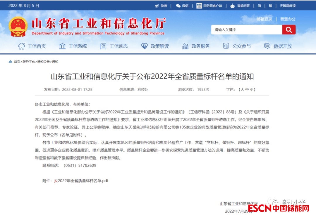 近日,山東省工業(yè)和信息化廳公布了2022年全省質(zhì)量標桿名單,新風光電子科技股份有限公司成功入選!