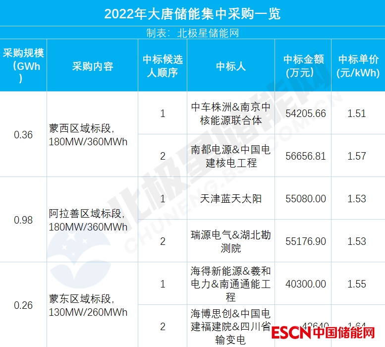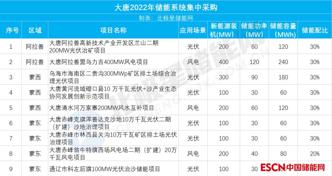 中國儲能網(wǎng)訊:9月27日,大唐2022年度最大規(guī)模儲能招標(biāo)結(jié)果出爐!至此大唐170萬千瓦新能源項目儲能工程480MW/980MWh儲能采購全部完成。