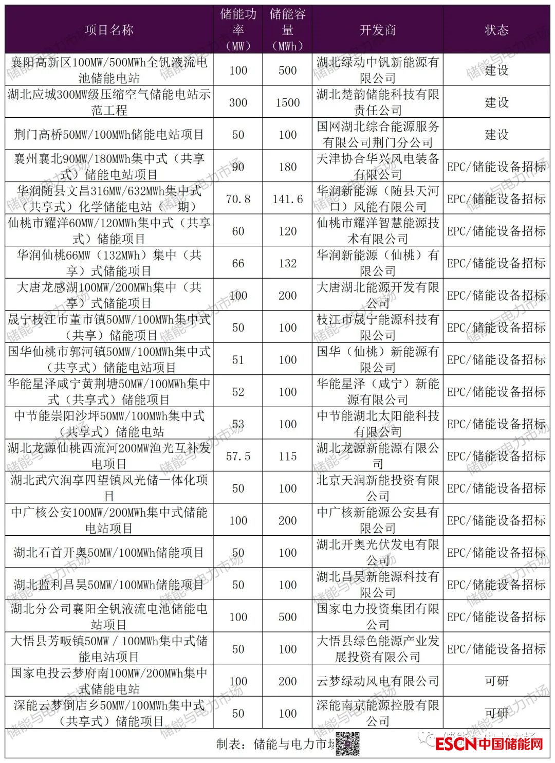 表:湖北已啟動(dòng)儲(chǔ)能項(xiàng)目一覽