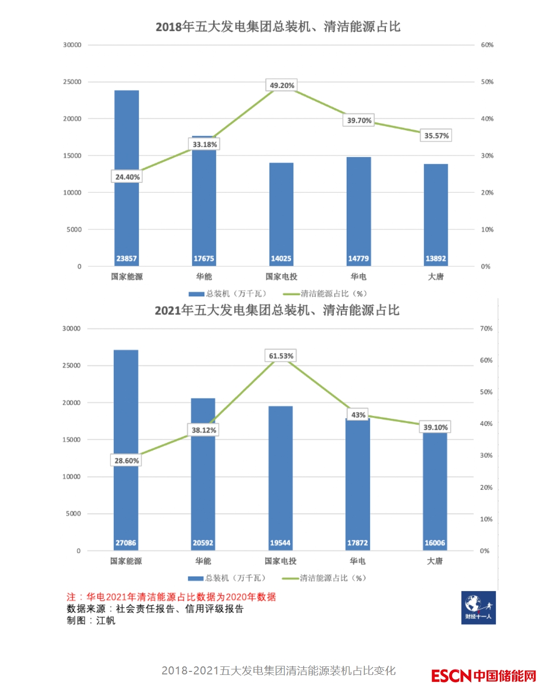 4年后,華能的清潔能源裝機比例從2018年的33%提高至接近40%,裝機量達到8298萬千瓦,拉近了與其他發(fā)電央企的差距。
