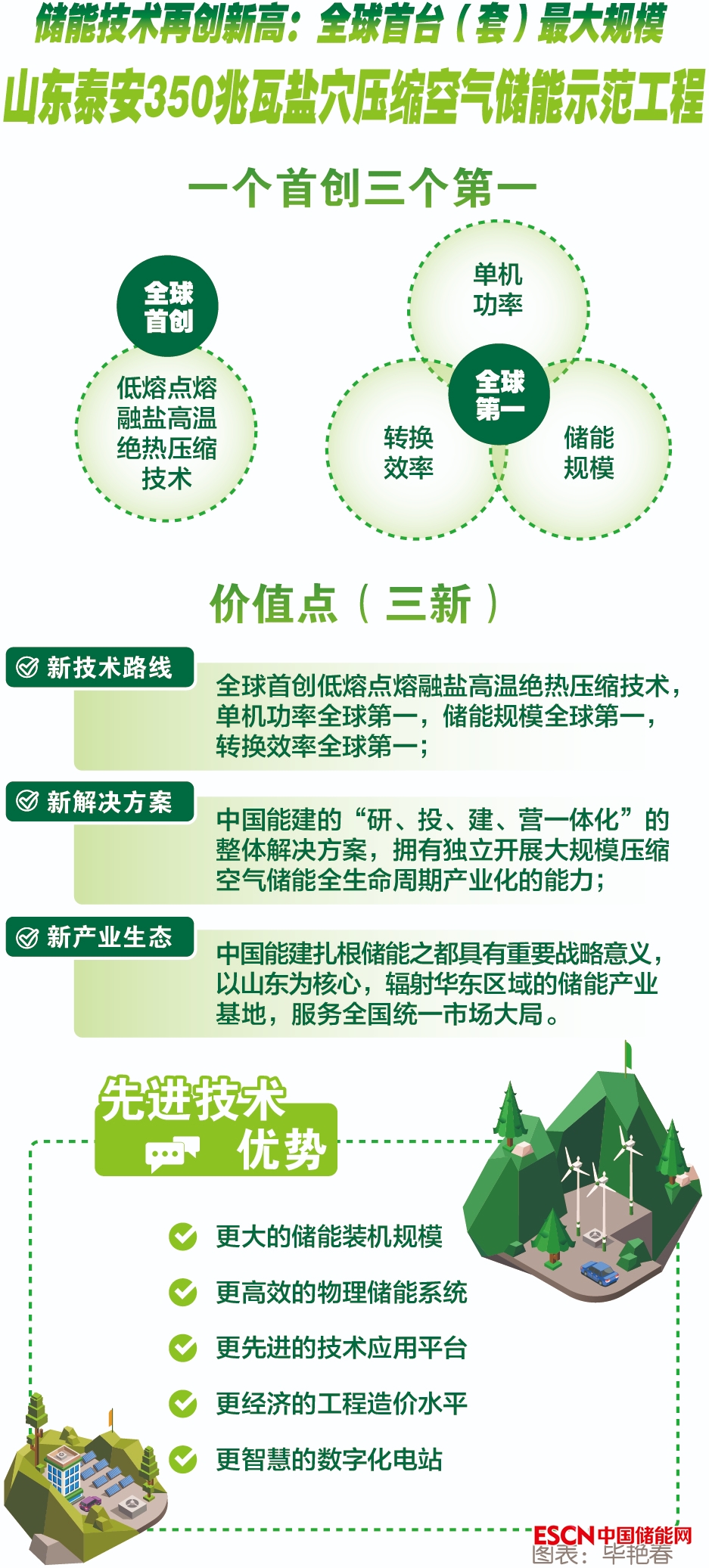 大規(guī)模長時(shí)儲能是支撐構(gòu)建新型電力系統(tǒng)的關(guān)鍵技術(shù),是唯一能夠?qū)?biāo)抽水蓄能的大規(guī)模物理儲能技術(shù),堪稱新型電力系統(tǒng)“超級綠色充電寶”,對推動能源綠色低碳轉(zhuǎn)型和保障能源安全具有現(xiàn)實(shí)意義,已成為大局所需、大勢所趨、行業(yè)所向,正迎來規(guī)?;?、融合化、數(shù)字化發(fā)展的大潮。泰安項(xiàng)目是繼中國能建主體投資的世界首臺(套)300兆瓦級壓縮空氣儲能示范工程開工后,又一大規(guī)模長時(shí)新型儲能工程落地。