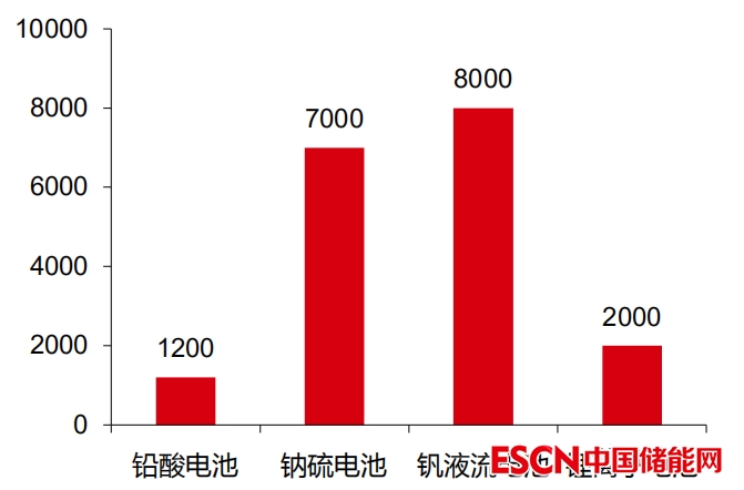 不同儲(chǔ)能系統(tǒng)初次建設(shè)成本對(duì)比(元/千瓦時(shí))