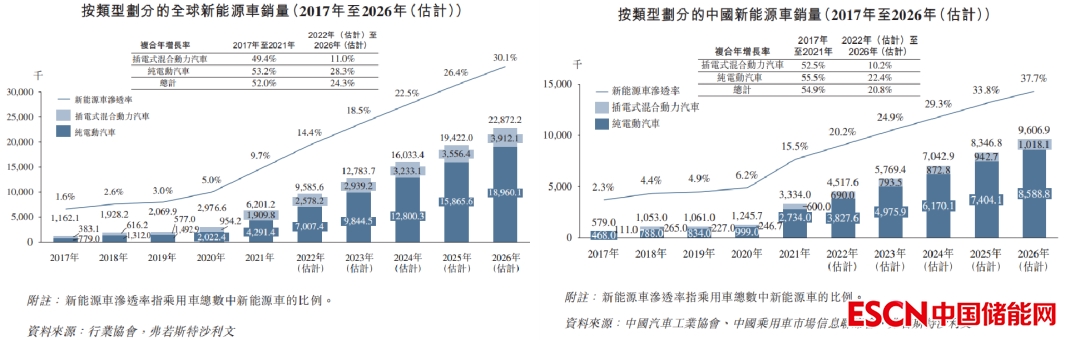 動力電池行業(yè)的爆發(fā),離不開下游新能源車的加速滲透。根據弗若斯特沙利文的數據,2021年全球新能源車滲透率已經來到9.7%。全球新能源車在過去5年的復合增長率達到52.0%,預計在未來5年還將保持24.3%左右的增速增長。