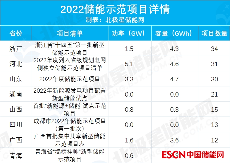 中國(guó)儲(chǔ)能網(wǎng)訊:近日,廣西、湖南又陸續(xù)公布了儲(chǔ)能示范項(xiàng)目清單,山東儲(chǔ)能示范項(xiàng)目又單獨(dú)新增一項(xiàng)。據(jù)不完全統(tǒng)計(jì),2022年截至目前,已有八省公布儲(chǔ)能示范項(xiàng)目167個(gè),而已公開的儲(chǔ)能規(guī)模約12.9GW/20.3GWh!