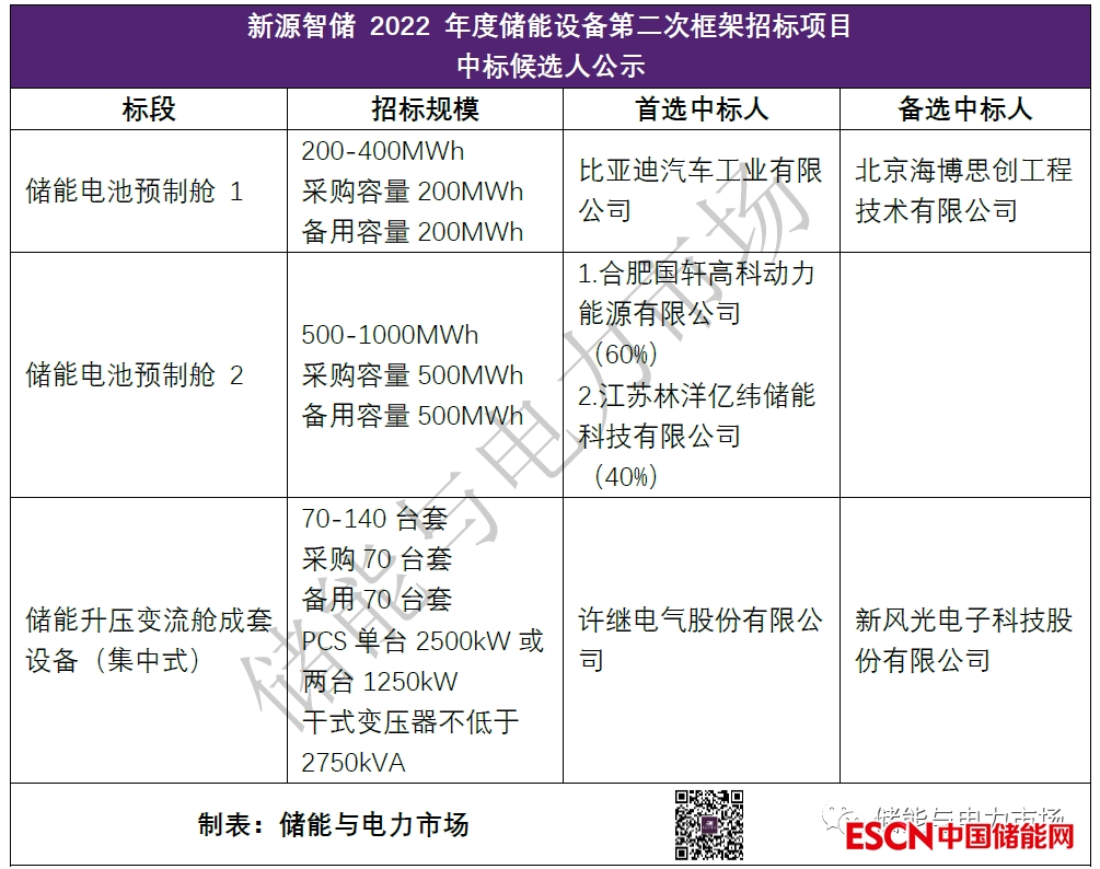 中國(guó)儲(chǔ)能網(wǎng)訊:近日國(guó)家電投發(fā)布了《中國(guó)電力國(guó)際發(fā)展有限公司建設(shè)工程第三十九批集中招標(biāo)結(jié)果公示》,隨公示國(guó)家電投下屬新源智儲(chǔ)2022年度第二次框架招標(biāo)結(jié)果浮出水面。