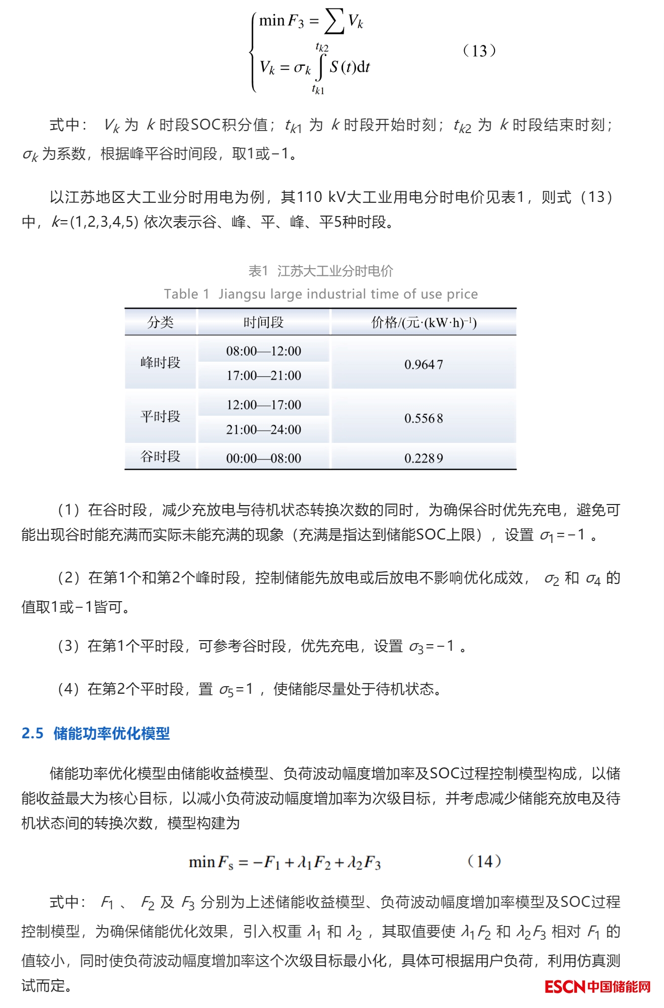 在兩部制電價下,為了更高效地利用儲能提升用戶的綜合效益,通過構(gòu)建需量管理、儲能收益、負荷波動幅度增加率及SOC過程控制模型,提出了區(qū)分工作日和非工作日負荷的用戶側(cè)儲能多目標優(yōu)化策略,可有效實現(xiàn)降低用戶月度用電成本、降低負荷波動幅度增加率及減少儲能充放電及待機狀態(tài)轉(zhuǎn)換次數(shù)的多目標優(yōu)化,并利用Matlab調(diào)用Cplex求解器對某大工業(yè)用戶進行算例優(yōu)化,驗證了策略的可行性。