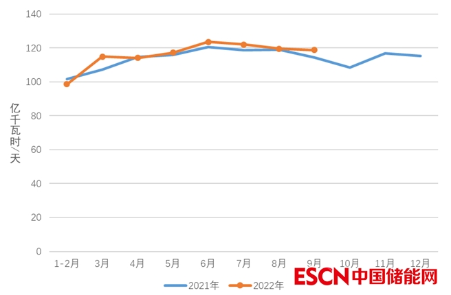 圖3 2021、2022年分月制造業(yè)日均用電量