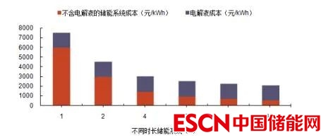 ▲儲(chǔ)能時(shí)長(zhǎng)越長(zhǎng),釩電池單位成本越低