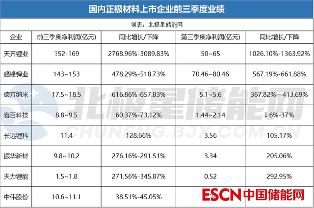 除天齊鋰業(yè)、贛鋒鋰業(yè)之外,德方納米、振華新材、天力鋰能、長(zhǎng)遠(yuǎn)鋰科等公司前三季度凈利潤(rùn)與增長(zhǎng)同比超過100%。