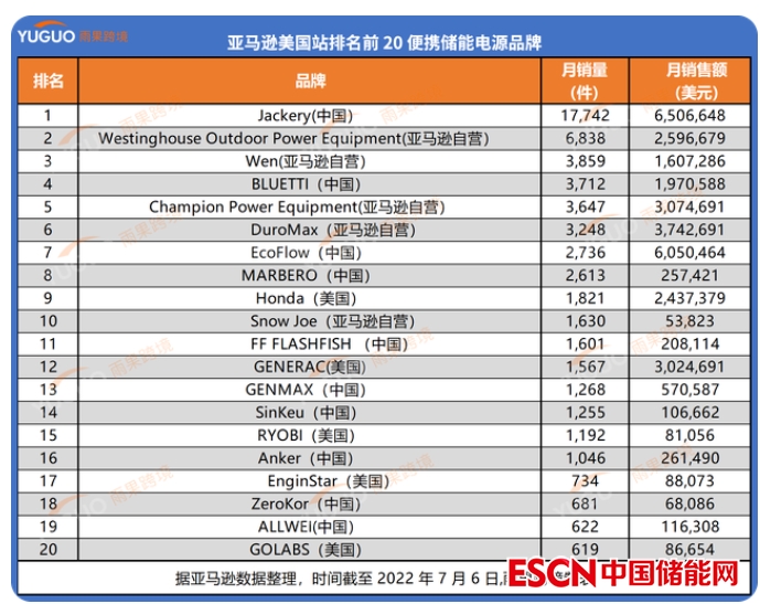 過去4年里,得益于疫情后房車出游、露營探險、帆船垂釣等戶外運動對戶外電源的需求,便攜儲能市場規(guī)模增長迅速,從銷量分布情況來看,歐美海外市場占據(jù)銷量分布主體,其中華寶新能旗下Jackery在這海外儲能市場表現(xiàn)尤為突出,Jackery亞馬遜全球銷售額持續(xù)增長,無論是儲能單品、儲能+太陽能板套餐,還是太陽能板系列Jackery電小二均表現(xiàn)亮眼。目前Jackery Explorer 300、Jackery Solar Generator 1000成歐美市場暢銷品。