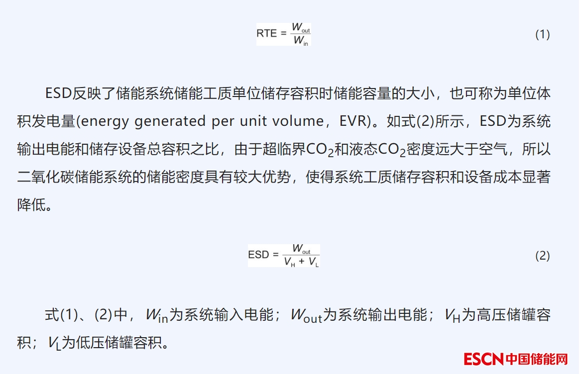 對于壓縮氣體儲能系統(tǒng),最能反映系統(tǒng)儲能特性的評價指標(biāo)主要有系統(tǒng)循環(huán)效率(round trip efficiency,RTE)和儲能密度(energy storage density,ESD)。