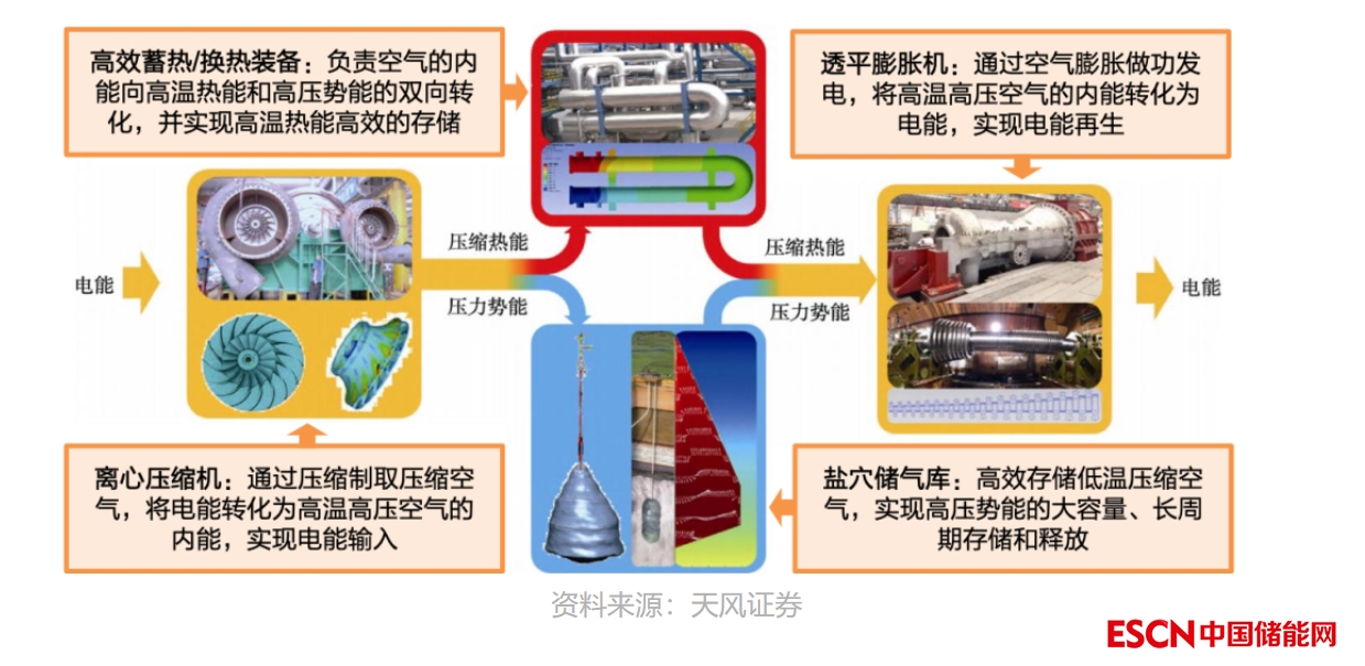 壓縮空氣儲能上游最核心設備為離心式空氣壓縮機+換熱器+透平膨脹機。