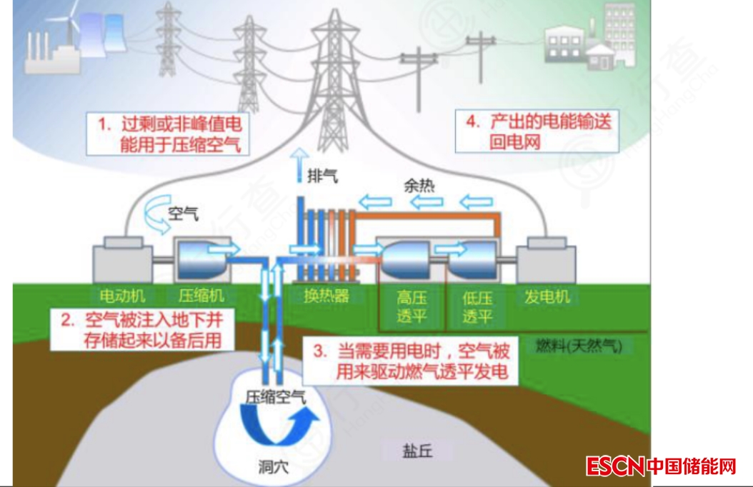 壓縮空氣儲能是指在電網(wǎng)負荷低谷期將電能用于壓縮空氣,將空氣高壓密封在報廢礦井、儲氣罐、山洞、過期油氣井或新建儲氣井中,在電網(wǎng)負荷高峰期釋放壓縮空氣推動汽輪機發(fā)電的儲能方式。