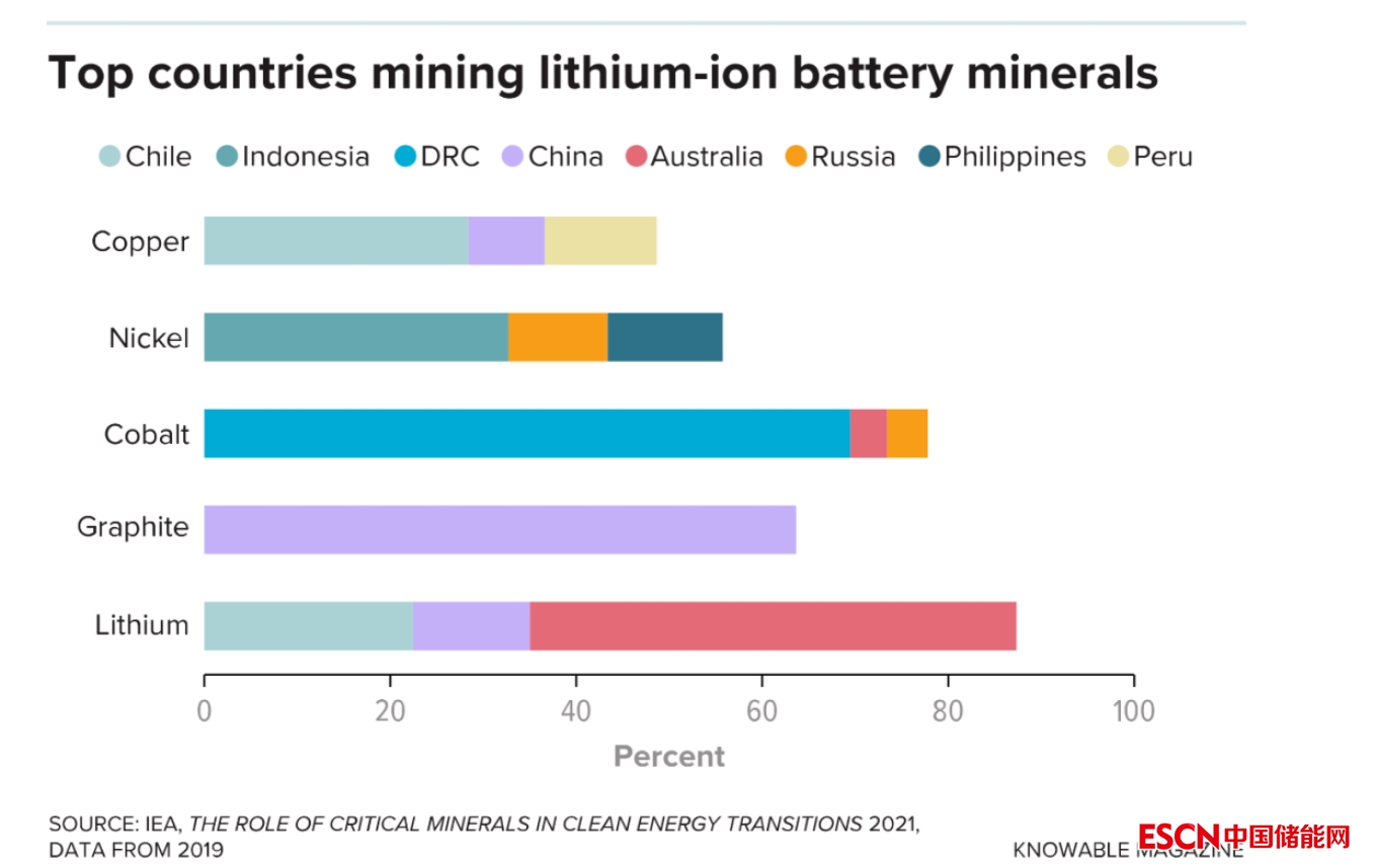 所有這些金屬都必須提取出來,而且僅靠回收還不能滿足市場需求。盡管美國有很多銅礦(并從廢品回收中獲得相當(dāng)大一部分銅),但鋰離子電池中幾乎所有的其他金屬都來自其他國家的礦區(qū)。全球80%以上的鋰來自智利、澳大利亞和中國,而60%以上的鈷來自剛果民主共和國。