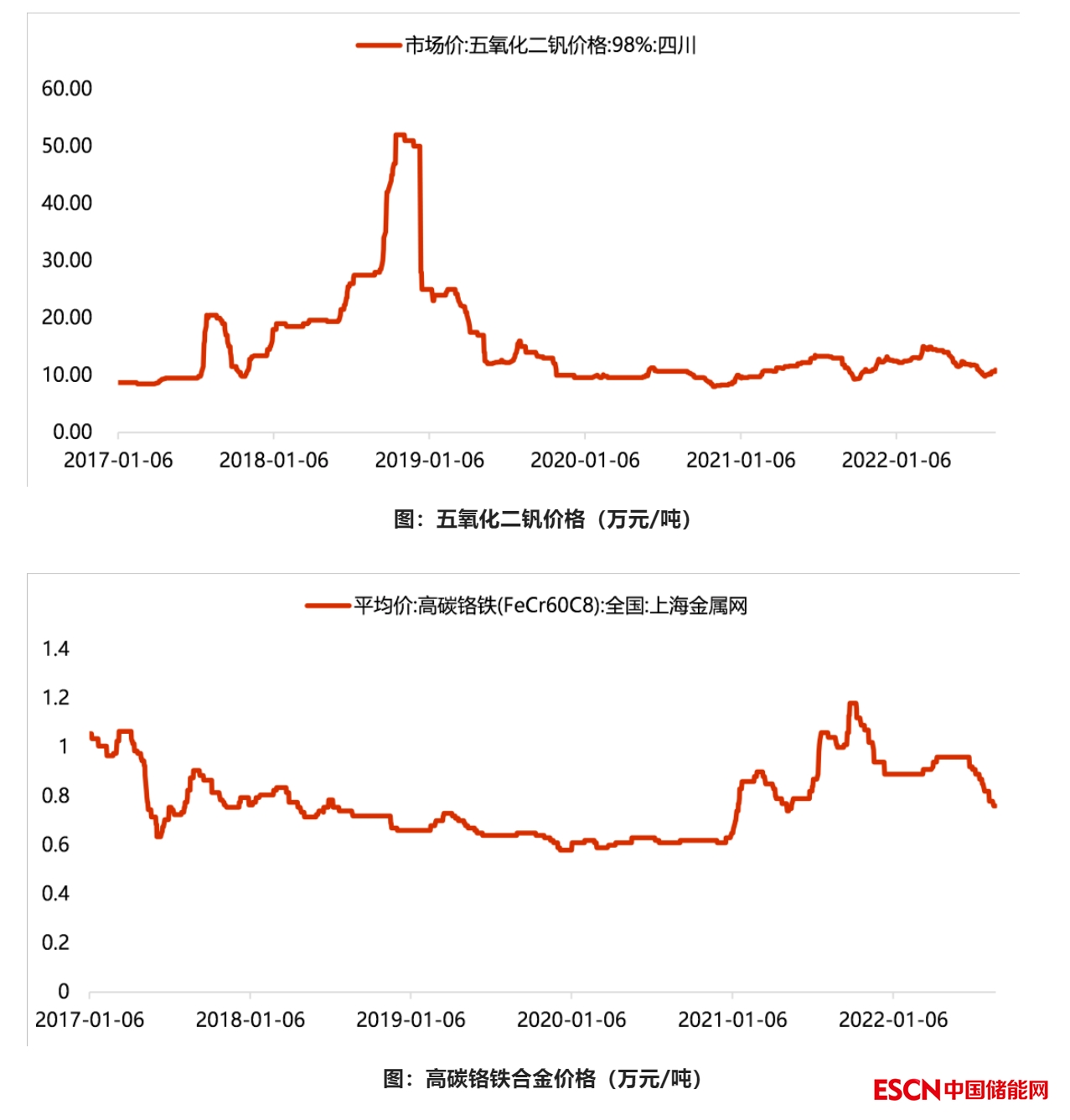 關(guān)鍵材料價格差異:五氧化二釩和鉻鐵合金