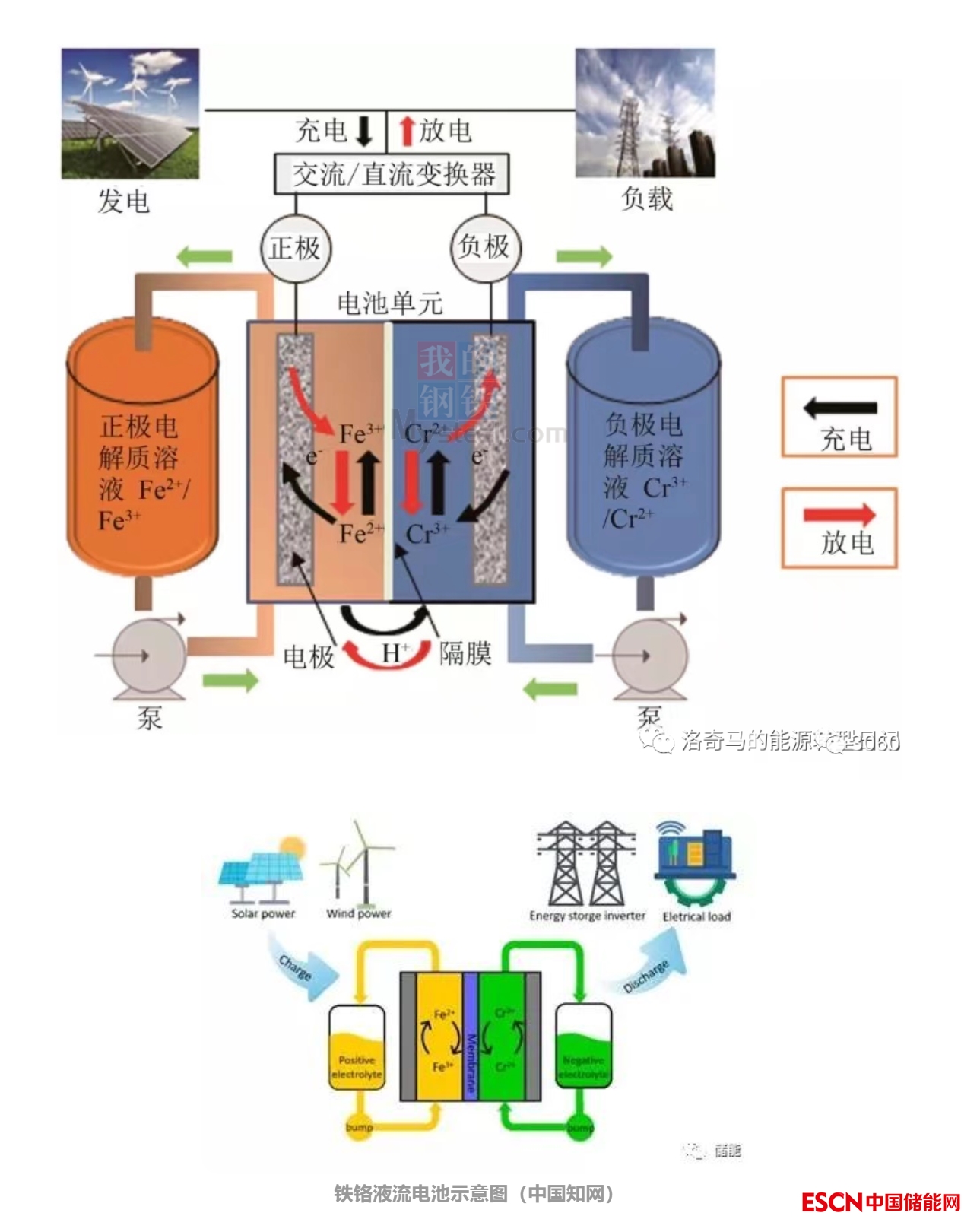 鐵鉻液流電池對大多數(shù)來說比較陌生,所以先簡單介紹下。顧名思義,它是以價格低廉、原料豐富的鐵離子和鉻離子作為活性物質(zhì)。
