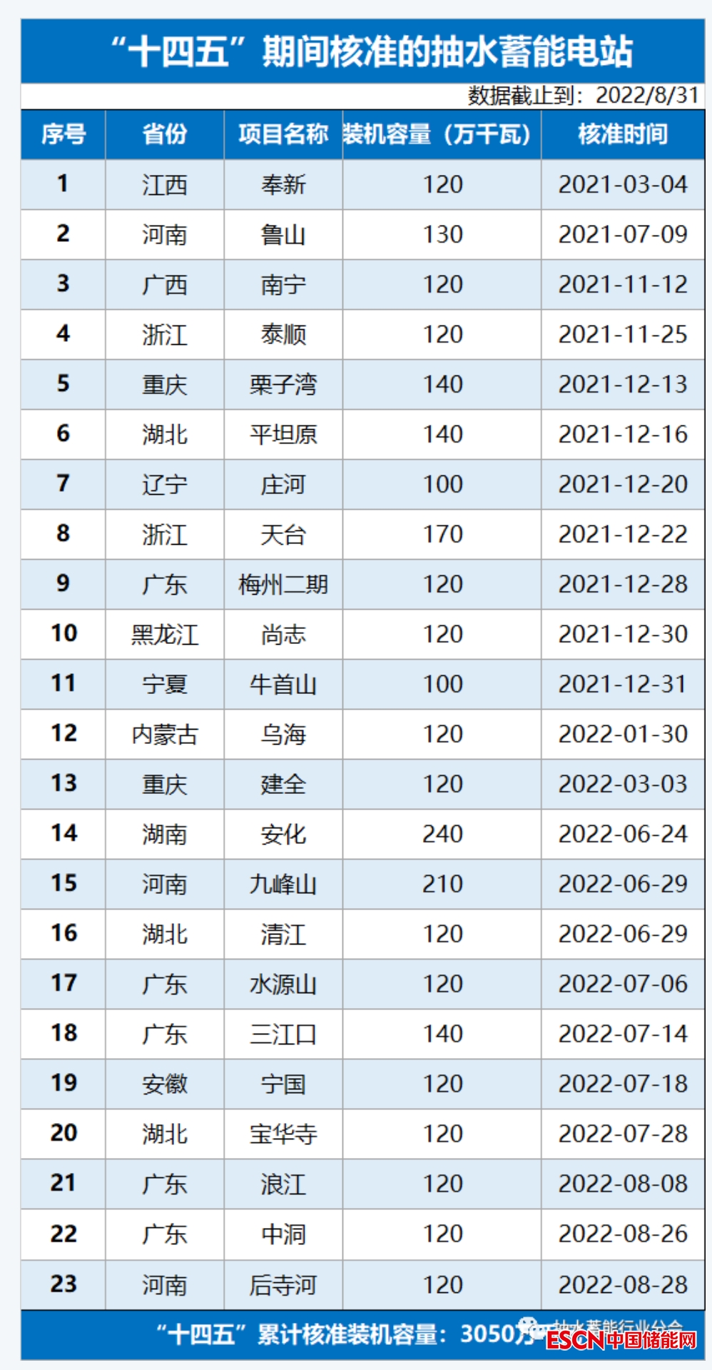 中國(guó)儲(chǔ)能網(wǎng)訊:截至 2022 年 8 月 31 日,“十四五”已核準(zhǔn) 23 座抽水蓄能電站,總裝機(jī)規(guī)模 3050 萬(wàn)千瓦,項(xiàng)目投資規(guī)模超過(guò) 2000 億元。