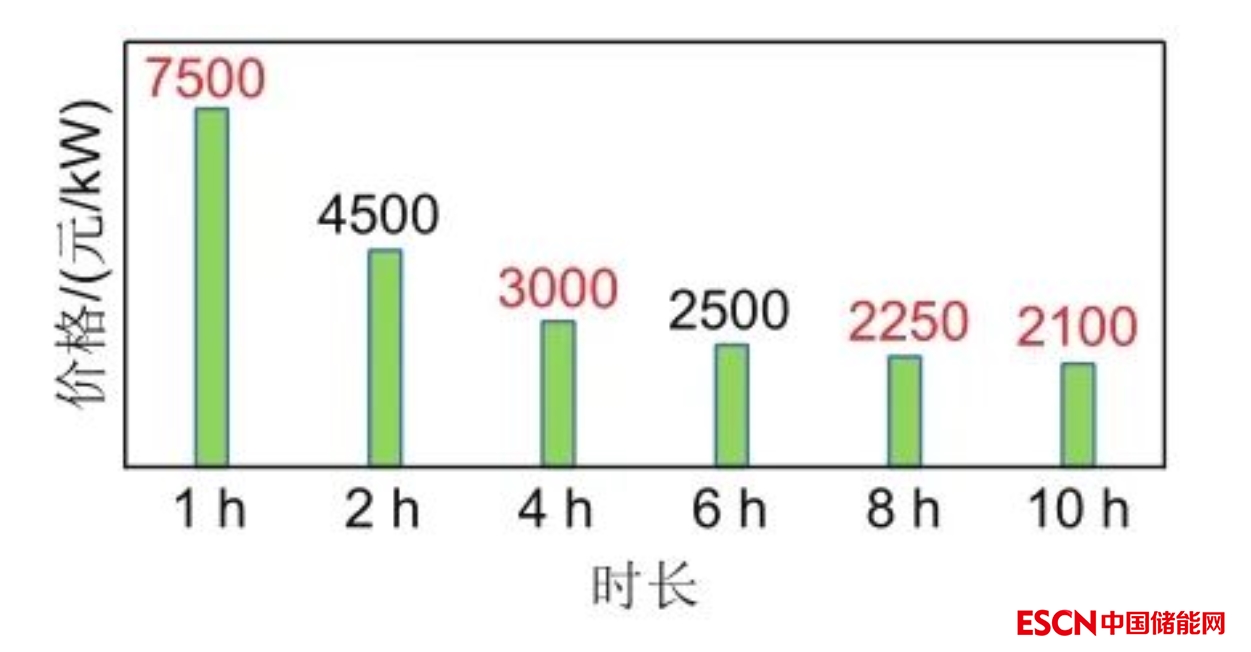 與不同時長儲能系統(tǒng)的價格分析