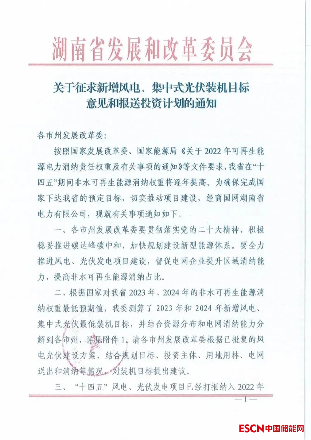 中國儲能網(wǎng)訊:近日,湖南省發(fā)改委發(fā)布《關(guān)于征求新增風電、集中式光伏裝機目標意見和報送投資計劃的通知》。