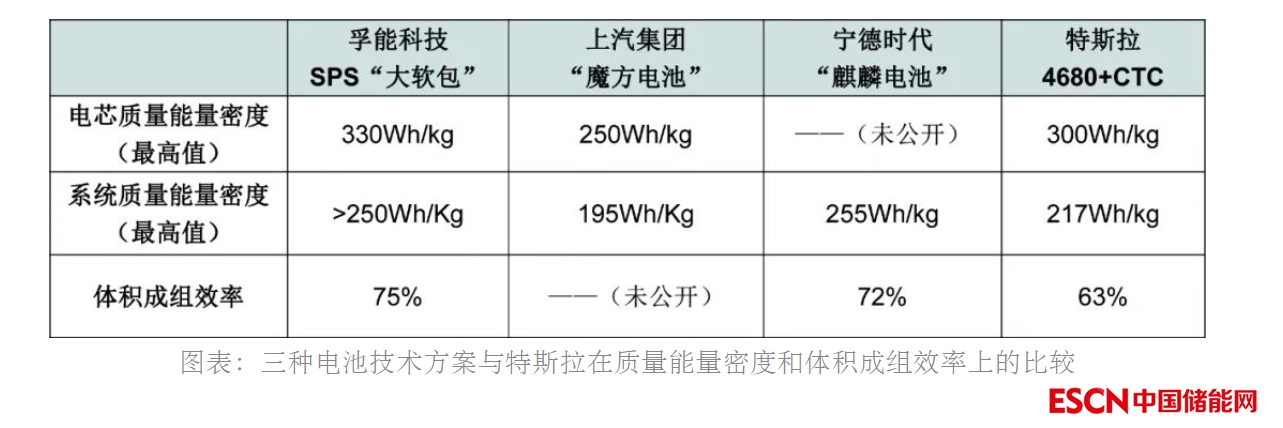 在系統(tǒng)集成方面,三種技術(shù)方案均采用了“CTP”技術(shù)。其中孚能科技SPS方案采用液冷板與底盤一體化設(shè)計(jì),半固態(tài)大軟包電芯直接集成于底盤系統(tǒng),使系統(tǒng)零部件減少50%,打破了軟包電池在系統(tǒng)集成度上的傳統(tǒng)劣勢;上汽的“魔方電池”最大的亮點(diǎn)在于躺式電芯,以及CTP、高電壓、超薄基材等技術(shù)及材料,也實(shí)現(xiàn)了成組效率上的極大突破;而寧德時(shí)代“麒麟電池”通過取消橫縱梁、水冷板、隔熱墊原本各自獨(dú)立的設(shè)計(jì),集成為多功能彈性夾層,也實(shí)現(xiàn)了超出預(yù)期的模組集成度。