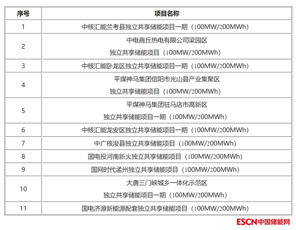 河南省2022年度省級(jí)獨(dú)立儲(chǔ)能電站示范項(xiàng)目(第一批)名單