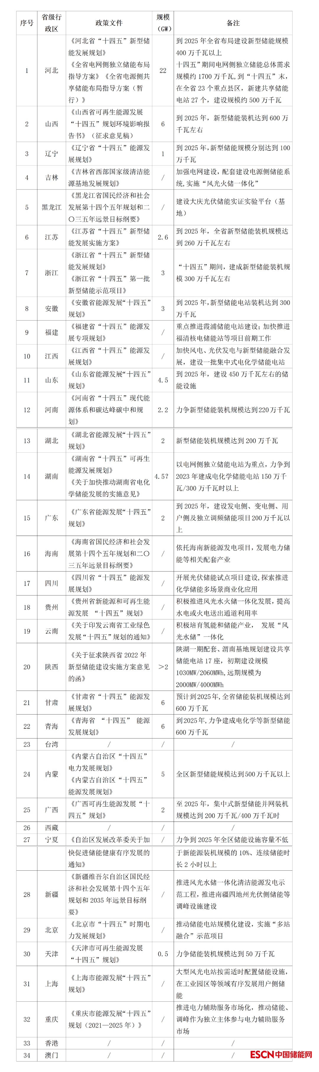 “十四五”新型儲(chǔ)能裝機(jī)規(guī)劃目標(biāo)