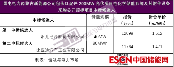 中國儲能網(wǎng)訊:11月17日,國電電力內(nèi)蒙古新能源公司包頭紅泥井200MW光伏項(xiàng)目電化學(xué)儲能系統(tǒng)及其附件設(shè)備采購公開招標(biāo)項(xiàng)目中標(biāo)候選人公示對外發(fā)布。陽光電源股份有限公司以總報價12099萬元,折合單價1.512元/Wh,成為第一中標(biāo)候選人。