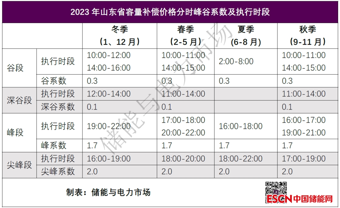 目前,山東省1-11月的谷段電價平均為0.0397元/kWh,高峰時段平均電價為0.9456元/kWh,尖峰時段平均電價為1.1087元/kWh,在時間劃分上,與此次容量電價的分時劃分存在一定的重合。