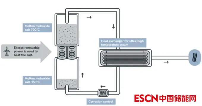 值得關(guān)注的是,Hyme公司的氫氧化物熔鹽儲(chǔ)熱系統(tǒng)基于其專有的腐蝕控制技術(shù),該項(xiàng)目將成為世界上第一個(gè)部署熔融氫氧化物熔鹽的儲(chǔ)熱設(shè)施。當(dāng)前市場上的熔鹽儲(chǔ)熱系統(tǒng)基本上都采用的是硝酸鹽,氫氧化物熔鹽的腐蝕性是一個(gè)難題,Hyme稱其掌握了一種專利技術(shù)可以解決腐蝕問題,該公司顯然是要改變?nèi)埯}儲(chǔ)能的現(xiàn)有游戲規(guī)則。