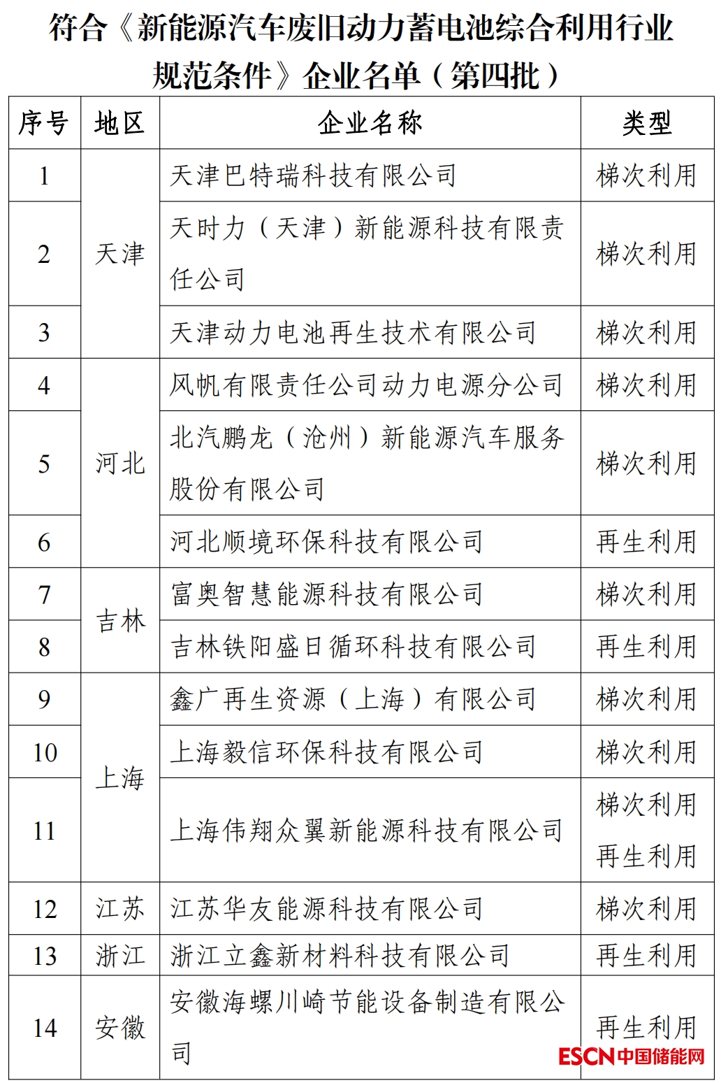 日前,工信部就擬公告的符合《新能源汽車廢舊動(dòng)力蓄電池綜合利用行業(yè)規(guī)范條件》企業(yè)名單(第四批)公開征求意見,本批次白名單企業(yè)共計(jì)41家。