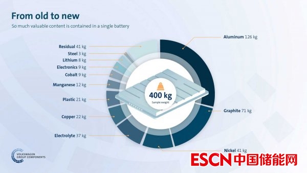 目前全球范圍內(nèi),各種回收方法都在不斷提高,我們看到各種材料回收率越來越高,都往90%方向走。歐盟有要求,將來的動力電池就是要用一定比例的回收材料才能使用。比如,大眾汽車的試點階段將從一個適度的目標開始——每班回收5批電池。每年的容量將達到3600批電池。每批電池400公斤,回收材料約1500噸。