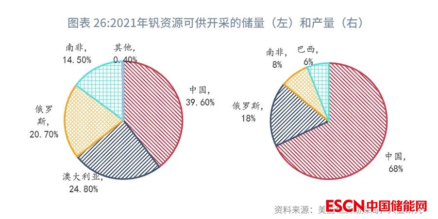 我國釩資源儲(chǔ)產(chǎn)量均居世界第一。據(jù)美國地質(zhì)勘探局?jǐn)?shù)據(jù),2021年全球釩礦石已探明可供開采的儲(chǔ)量為2400萬噸,其中中國儲(chǔ)量為950萬噸,占比40%;2021年全球釩產(chǎn)量為10.7萬噸,其中中國產(chǎn)量7.3萬噸,占比68%,儲(chǔ)產(chǎn)量均居世界第一。