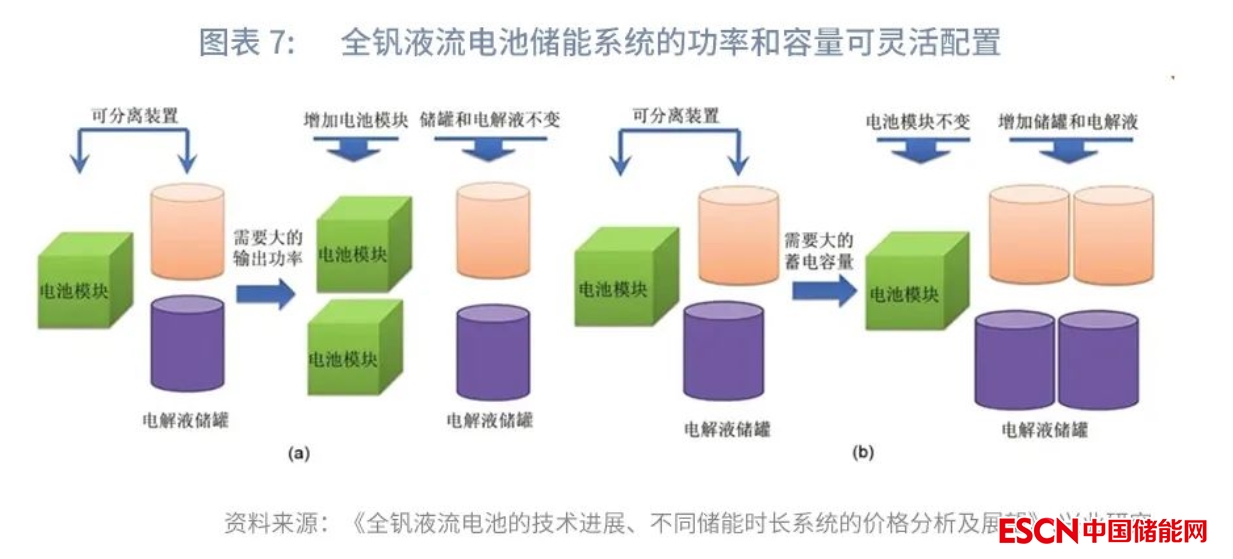 (1)功率與容量解耦,配置靈活、利于降本,適宜長時(shí)儲(chǔ)能調(diào)峰場景