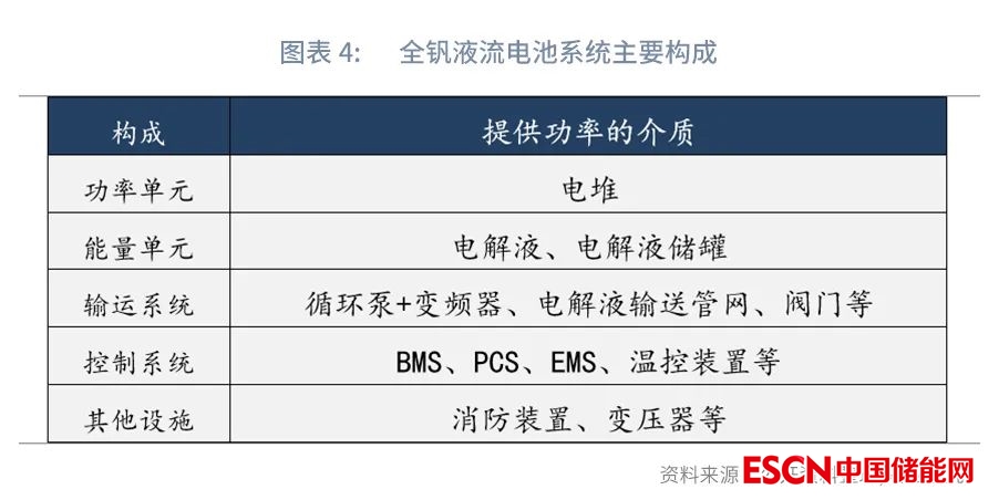 全釩液流電池儲(chǔ)能系統(tǒng)由功率單元、能量單元、輸運(yùn)系統(tǒng)、控制系統(tǒng)、其他設(shè)施等部分組成,其中功率單元和能量單元是核心。