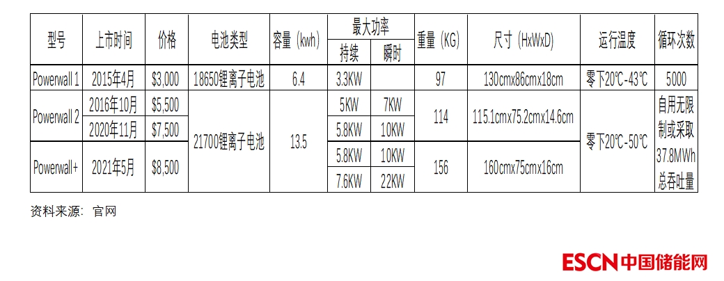 表3 特斯拉Powerwall基礎(chǔ)參數(shù)比較
