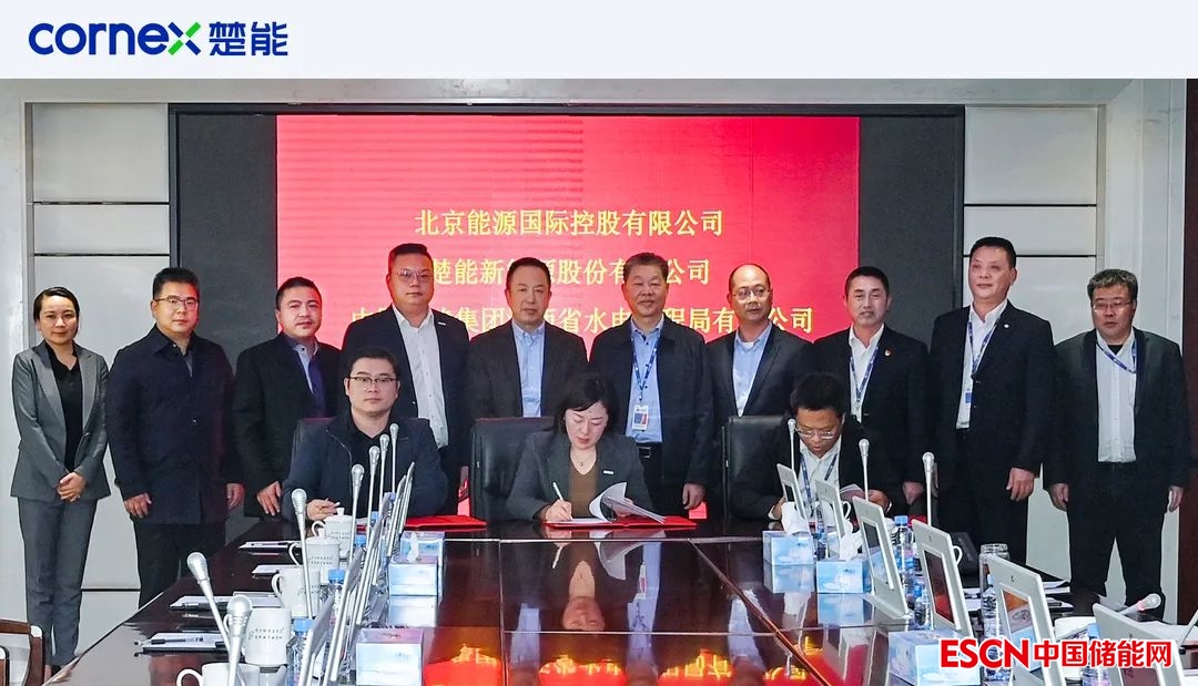 會(huì)議現(xiàn)場,中電建江西水電與楚能新能源單獨(dú)簽訂《儲(chǔ)能設(shè)備采購意向協(xié)議》,向楚能新能源采購2GWh的儲(chǔ)能設(shè)備。簽約結(jié)束后,雙方就開發(fā)河北、云南等省份的新能源大基地項(xiàng)目進(jìn)行了深入溝通。