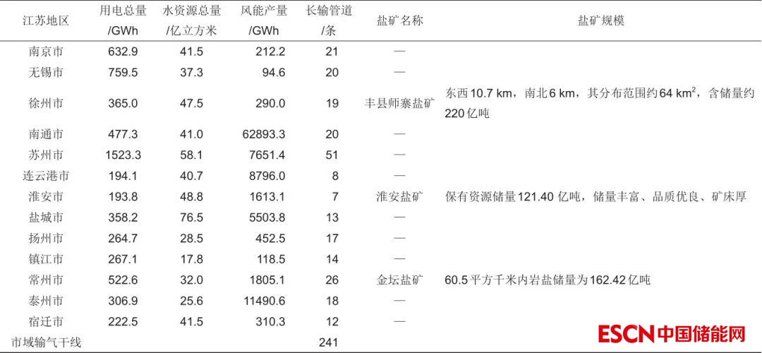 表3 江蘇各市用電總量、可再生資源、長輸管道及鹽礦分布情況