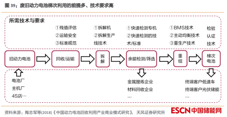 1) 廢舊動(dòng)力電池梯次利用的前提多、技術(shù)要求高