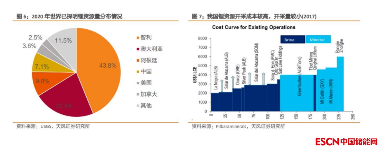 鋰資源國內(nèi)供應(yīng)能力弱,對(duì)外依存度高。2020 年全球已探明鋰資源量 2100 萬噸,其中我國已探明鋰資源量達(dá) 150 萬噸,占全球總儲(chǔ)備量的 7.1%,潛在供給相對(duì)充足;但受限于鋰資源的品質(zhì)(鎂鋰比較高)以及開采條件(地理氣候條件差)等因素,我國鋰資源實(shí)際供應(yīng)能力較弱,對(duì)外依存度高。