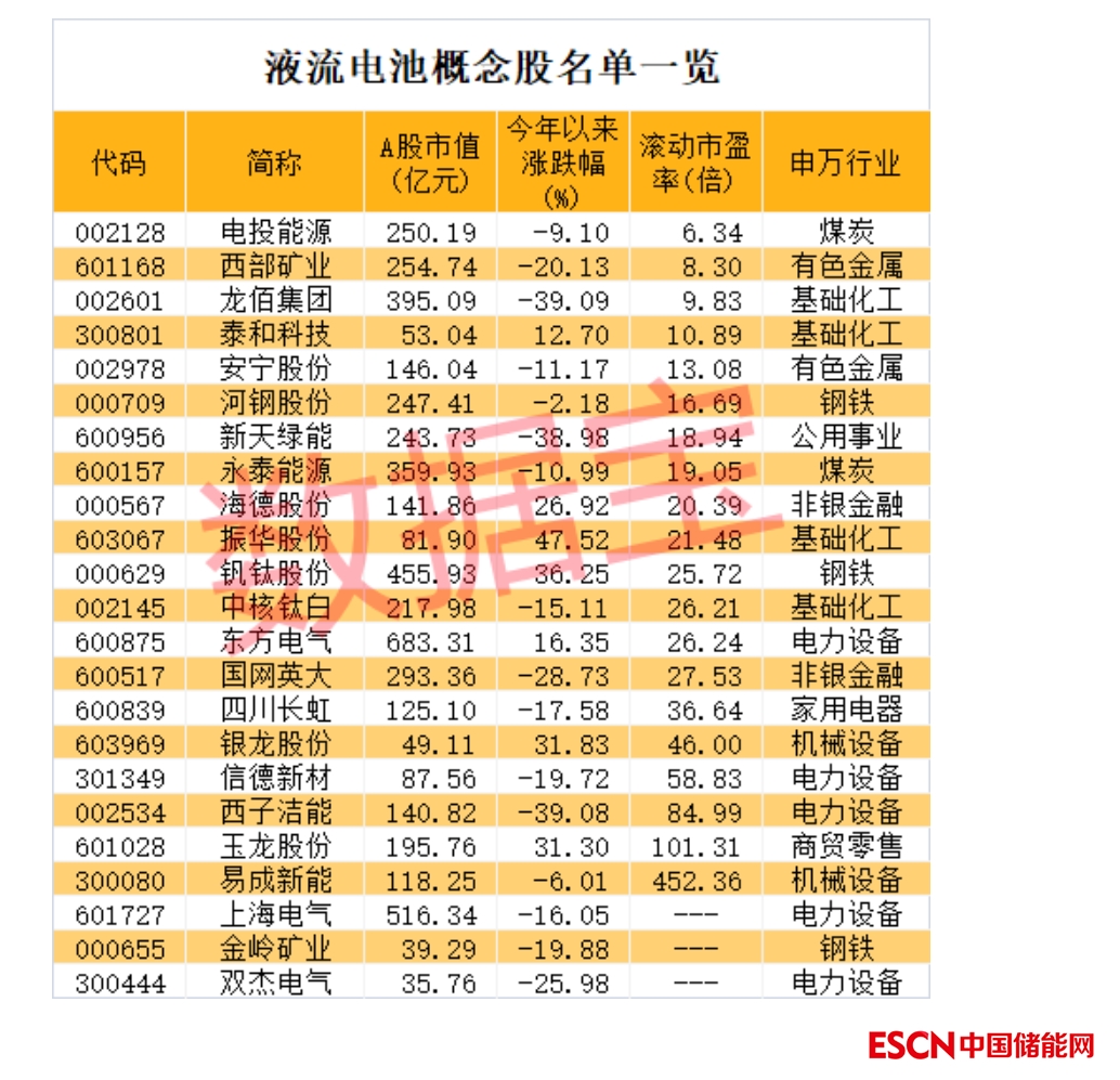 證券時(shí)報(bào)·數(shù)據(jù)寶統(tǒng)計(jì),A股市場(chǎng)上布局液流電池業(yè)務(wù)的公司有23家,超半數(shù)公司今年前三季度凈利潤(rùn)同比增長(zhǎng)。易成新能、泰和科技、海德股份、永泰能源等凈利潤(rùn)翻倍增長(zhǎng)。從估值水平來看,截至11月4日收盤,逾六成概念股滾動(dòng)市盈率低于30倍。電投能源、西部礦業(yè)、龍佰集團(tuán)等3股滾動(dòng)市盈率低于10倍。